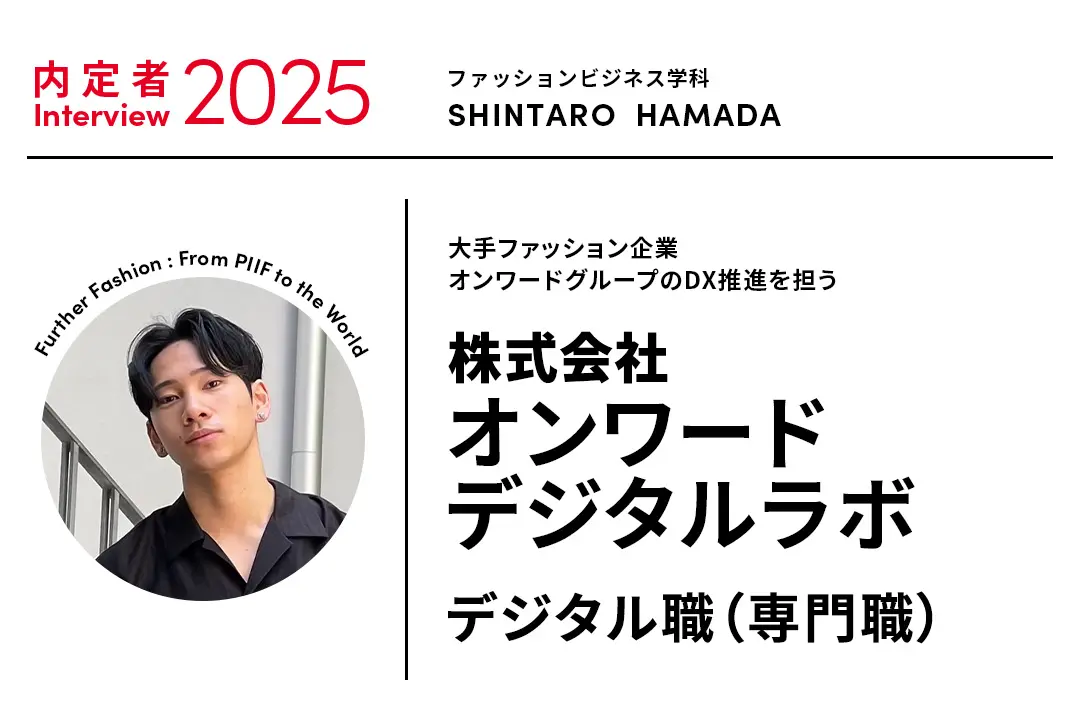 内定先である株式会社オンワードデジタルラボにて、主に、自社ECモールの運営を行いました。ニュースの作成や商品登録、顧客に提供するコンテンツの制作も経験できました。またファッションアパレル企業では、販売職と販売員のコーデを撮影するスナップカメラマンも経験できました。様々な職種から業界を見つめ、実際に体験できたことで、「行動力」「興味関心」「計画力」が身につきました。